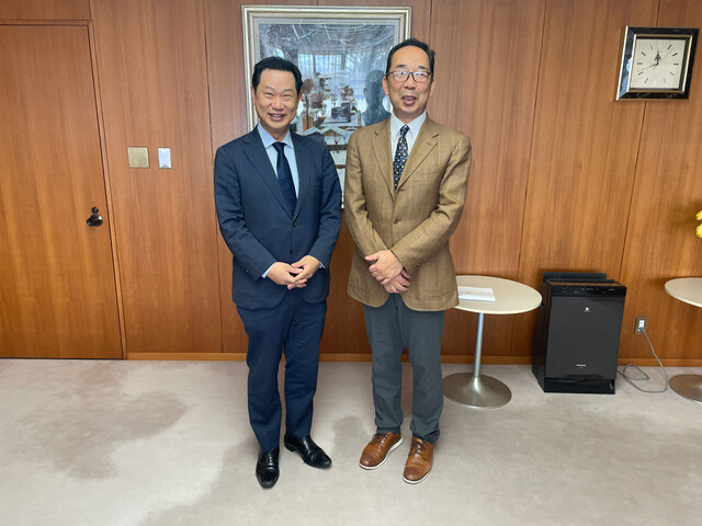 7月17日 学長は添田理事、大浦観光学部長とともに冨山和彦会長(日本取締役協会会長 経営共創基盤 IGPIグループ会長、日本共創プラットフォーム (JPiX)代表取締役社長) を訪問し、意見交換を行いました。