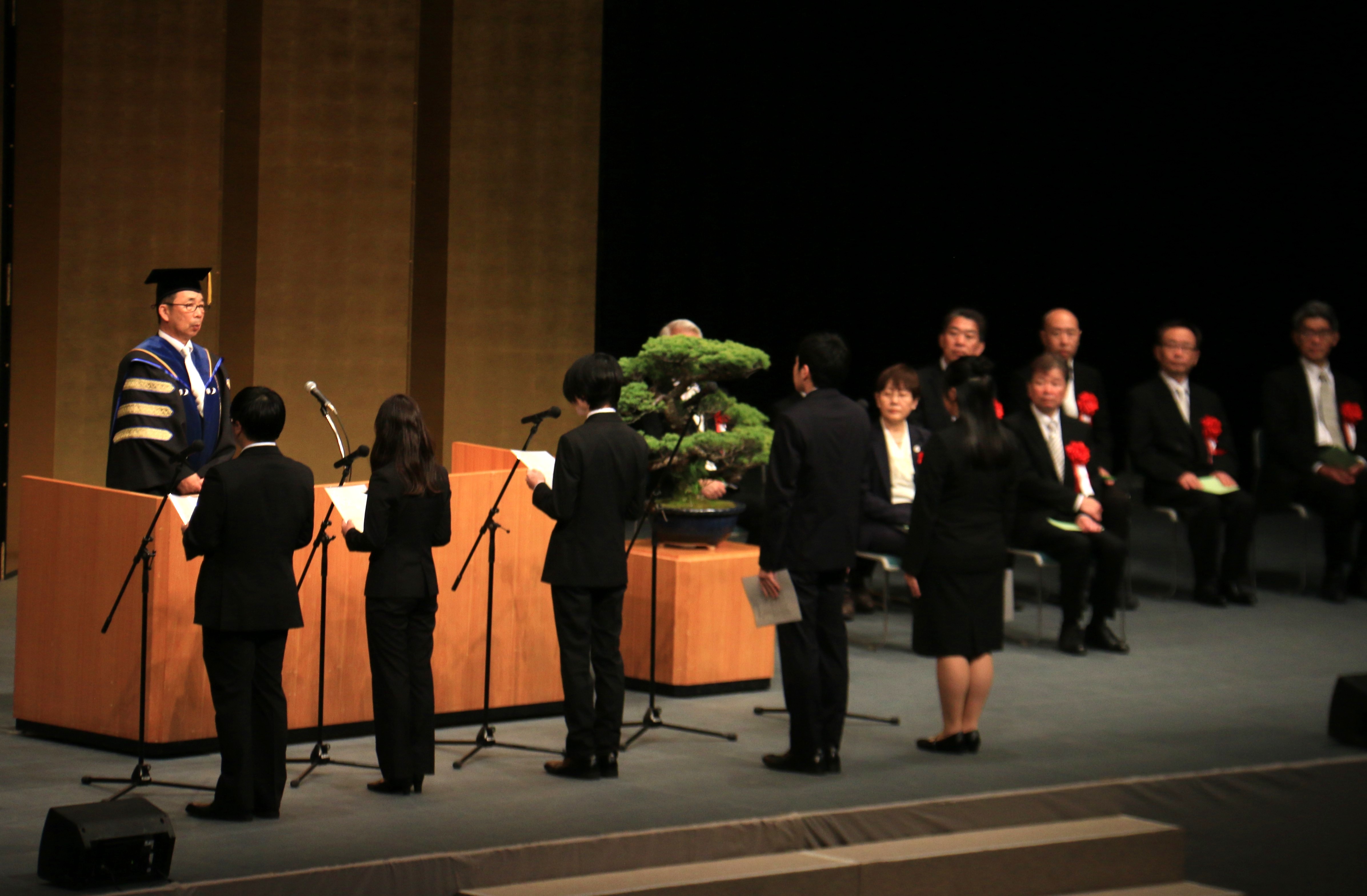 和歌山ビッグホエールで学位記授与式が行われ、本山学長は式辞を述べました。