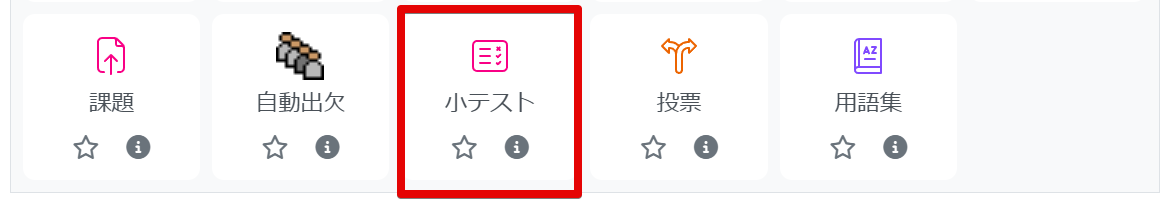 ②小テストを追加します。