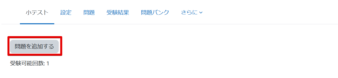 ①該当する小テストを開き、「問題を追加する」ボタンをクリックしてください。