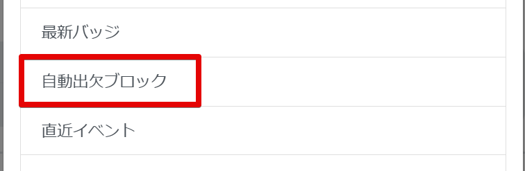 ④「自動出欠ブロック」から「出欠管理」をクリックします。