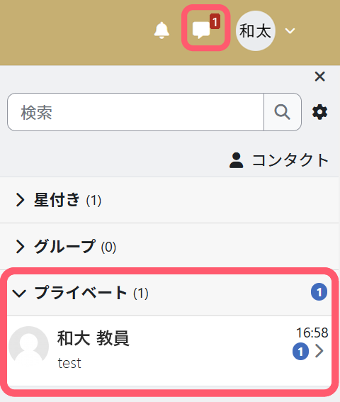 moodleにはメッセージ機能があり、それを利用することで教員とやりとりすることが可能です。