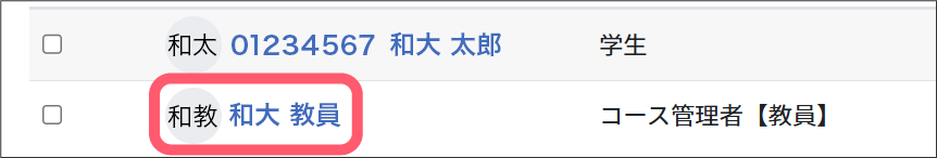 ②参加者画面が表示されますので、メッセージの送信先のユーザ(担当教員)の名前をクリックします。