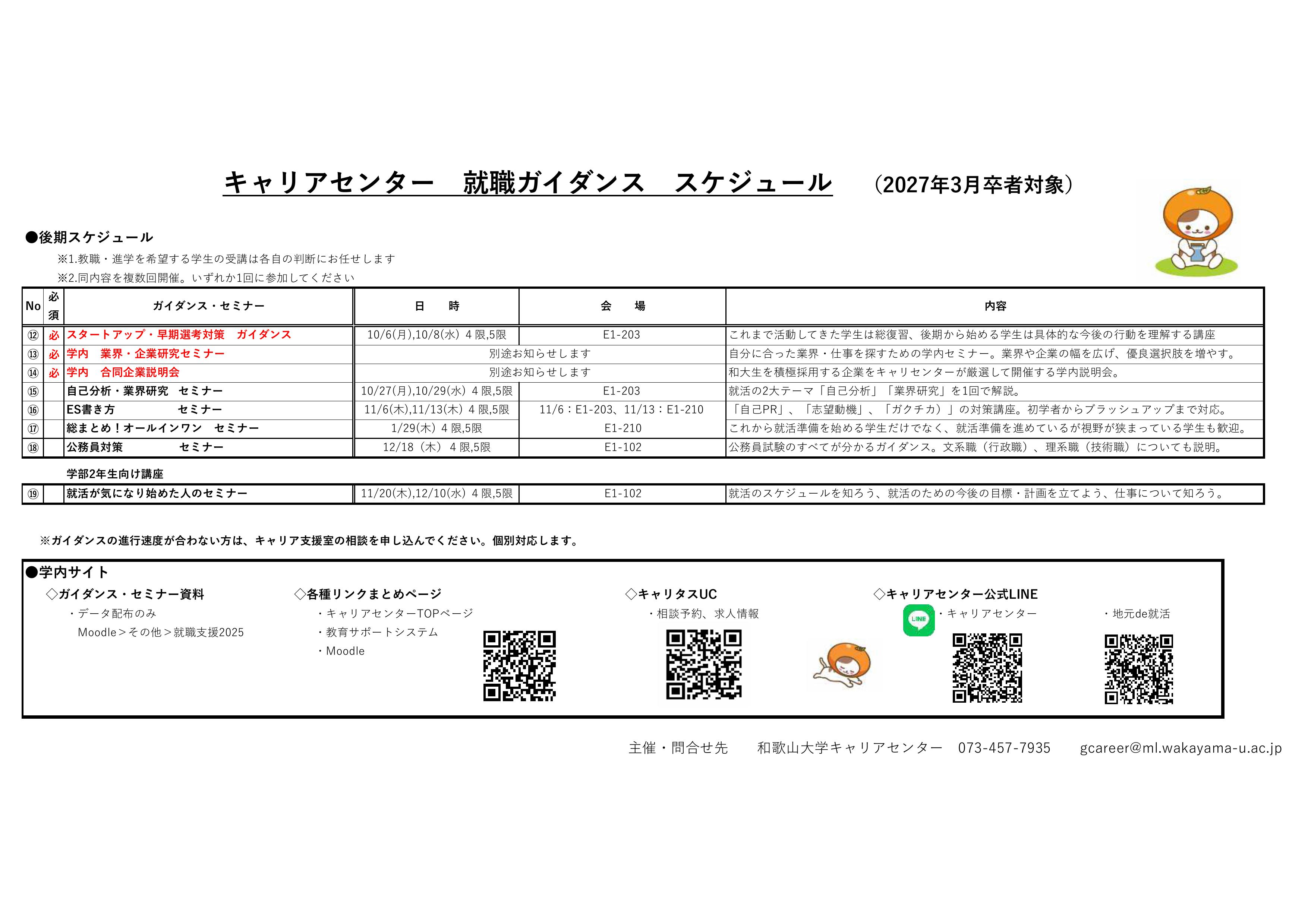 2027年3月卒業・修了予定者対象 就職支援イベントスケジュール【2025年度(後期)】