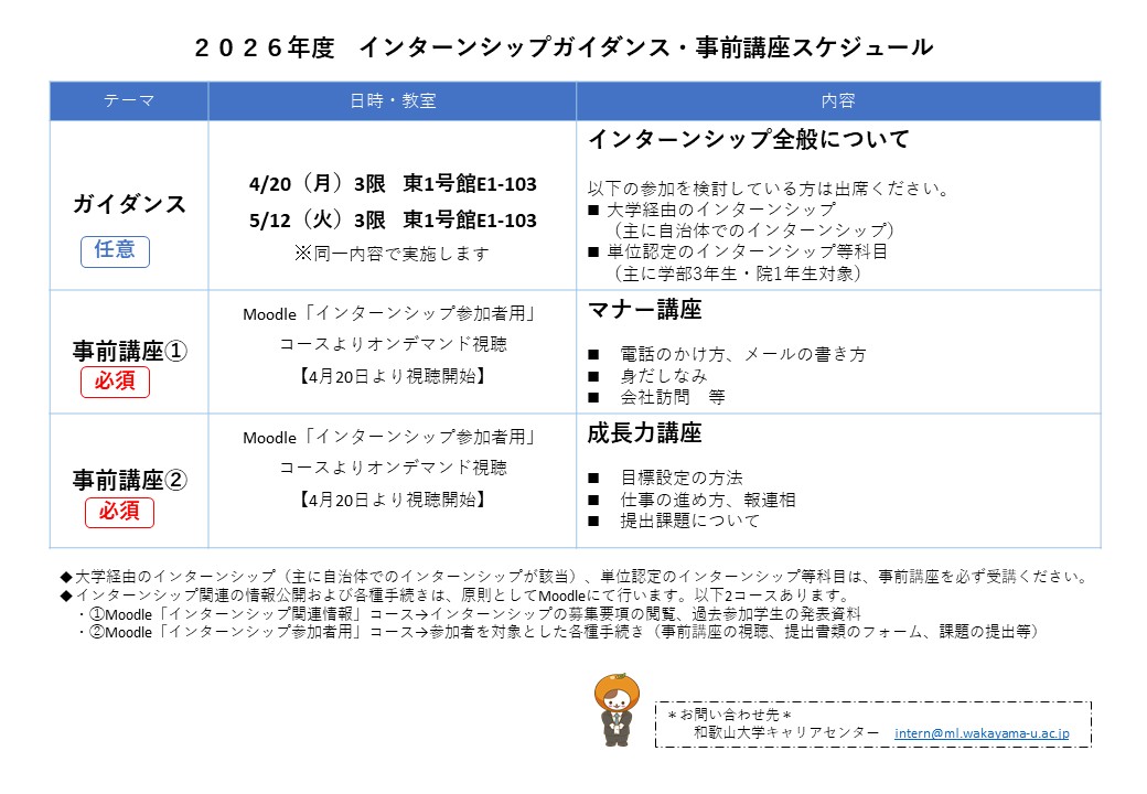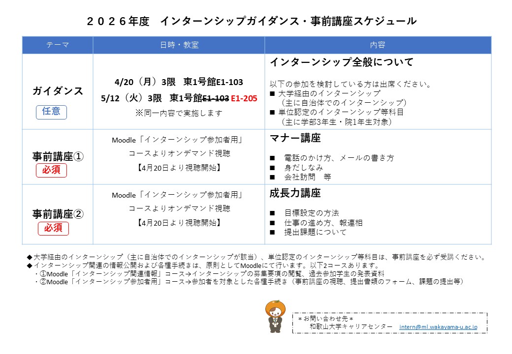 インターンシップガイダンススケジュール