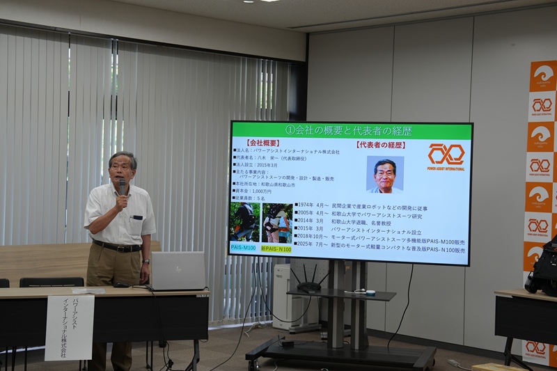 令和7年7月1日(火)に、和歌山大学北4号館1階多目的研究室にて、和歌山大学発ベンチャー認定第1号企業であるパワーアシストインターナショナル株式会社による、新型パワーアシストスーツの販売開始記者発表会を開催しました。