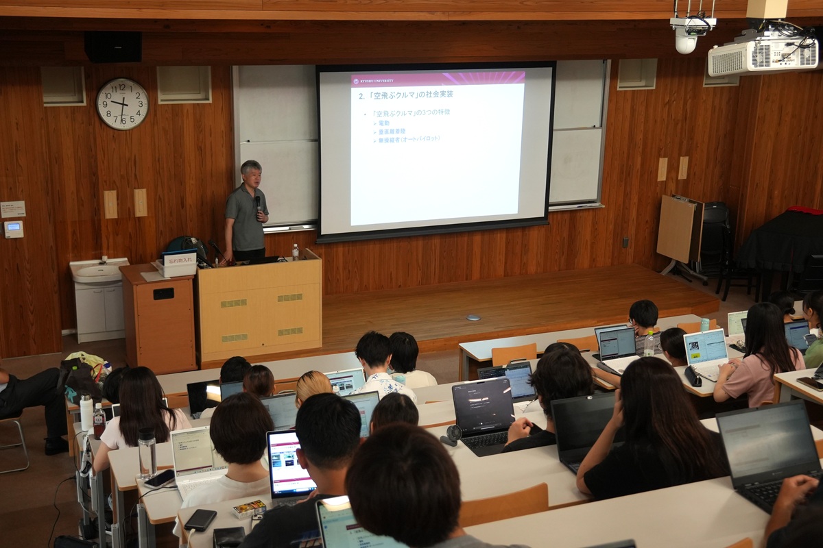 産学連携イノベーションセンターでは、2025年7月16日(水)に、九州⼤学の⼩島 ⽴(こじま りゅう)教授をお招きし、「空⾶ぶクルマ」の可能性やELSI の観点からの問題点についてご講演いただきました。