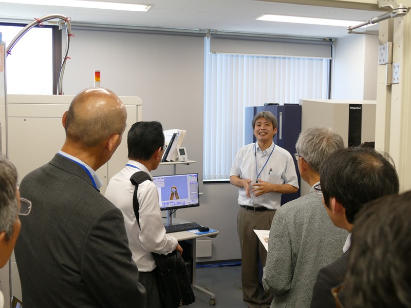 次に、2つの班に分かれて、システム工学部にある「高分解能核磁気共鳴装置」と「単結晶X線構造解析装置」の2つの研究機器のデモンストレーションを含む見学会を行いました。参加された皆様も関心を持たれたようで、熱心に質問をしていました。見学後は、この2つを含む共同利用可能な機器について、その利用の進め方の説明を行いました。