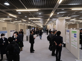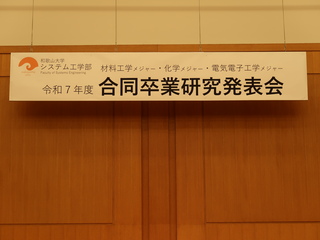 公開日 2026年03月02日 2月27日(金)に和歌山ビッグ愛においてシステム工学部 材料工学メジャー・化学メジャー・電気電子工学メジャーの3メジャーの合同卒業研究発表会が一般公開で開催されました。 学部4年生42名が3分間のショートプレゼンテーションを行い、その後ポスター発表をしました。この発表会には企業の方や高校生も参加され、来場者に対して丁寧に研究の説明と質問への回答をしていました。