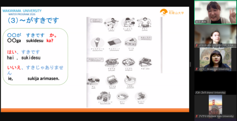 公開日 2026年03月09日 2026年3月3日〜4日に、オンラインでウィンタープログラムを実施しました。 初日は大学紹介や世界遺産・高野山について学び、2日目は日本語レベルに応じたクラスでの日本語授業体験や、和歌山県の果物など食農に関する授業を行いました。 今回、協定大学等9か国・地域から53名が参加し、プログラムは大盛況のうちに終了しました。 ご参加いただいた皆さま、ありがとうございました。次回のサマープログラムでまたお会いしましょう。