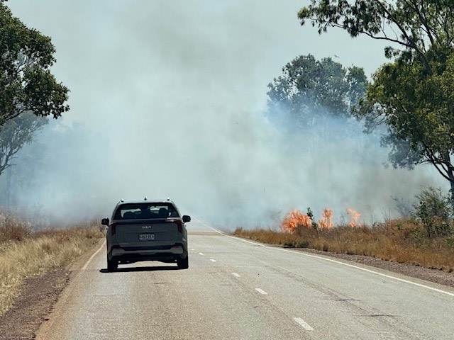 本日はダーヴィンへ向けた移動をおこないました。現在地は、昨日から州をまたぎ、ノーザンテリトリーのクルゲラです。先を急ぎたいため、日没後の移動も検討しましたが、日本の道と違って、夜は明かりがなく、野生動物との接触などの危険性があります。そのため、計画を変更して、途中のキャンプサイトでの宿泊とし、先ほど到着しました。 - 2025年8月4日