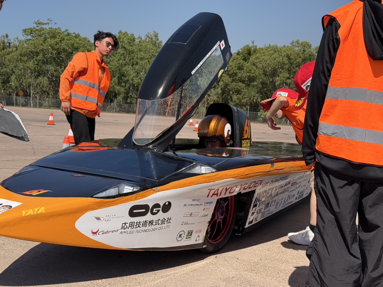 - 【レースの結果について(8月29日)】和歌山大学のYATAは、2,831km地点まで走りました。ゴールまで残り196 kmです。ここで強風によるコースアウトをしました。自走(レースの継続)は可能な状況でしたが、マシンの状況、荒天、ゴールまでの距離を総合的に判断した結果、ミッションコントロール(大会運営)よりこの地点にて走行を終えるようにとの指示がありました。残り約2時間で196 kmは難しい現実です。無念ではありますが、2,831kmにて和歌山大学のYATAはリタイアとなります。応援ありがとうございました。あと少しなのに…残念でなりません…。