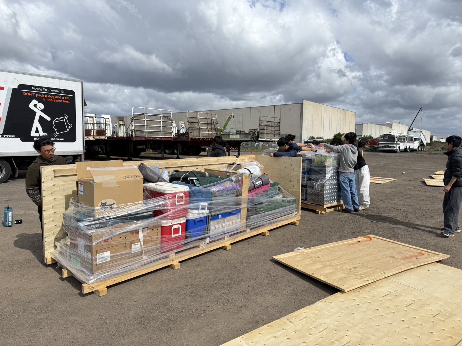 今日は、帰国に向けて、日本へ再輸送する貨物の整理をおこないました。 日本から持ってきた荷物の他にも、オーストラリアで購入した工具や調理具などもあり、輸送会社へ正確なパッキングリストを提出するために物品のナンバリングなどをおこないました。 また、学生たちは空いた時間を利用して、スーパーマーケットやショッピングモール街へ出かけ、アデレードの商業文化に触れながらレース後の休息を取っていました。 - 2025年8月31日