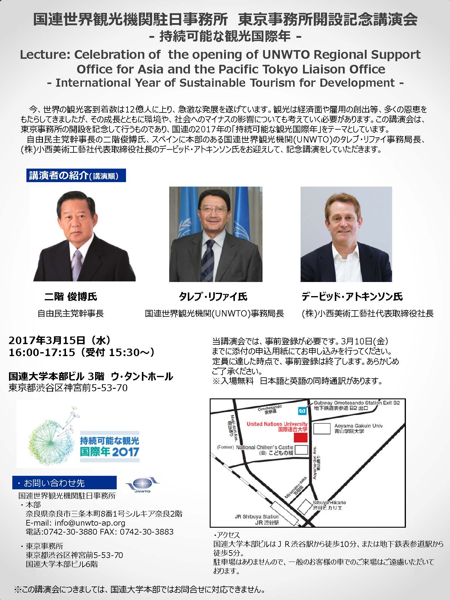 UNWTO東京事務所 開設記念講演会のご案内(3/15(水)開催)