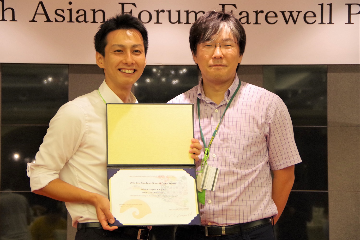 日本だけではなく、韓国、中国、カナダから計81名(教員15名、院生27名、学部生35名、その他4名)が参加し、基調講演、口頭発表(15題)、ポスター発表(24題)が行われました。また、同フォーラムにて伊藤研究室の観光学研究科博士前期課程(短期履修)1年、長野慎一の口頭発表「Influences of Walking on Kumano-Kodo on Affective Experience」が「2017 Best Graduate Student Paper Award」を受賞しました。