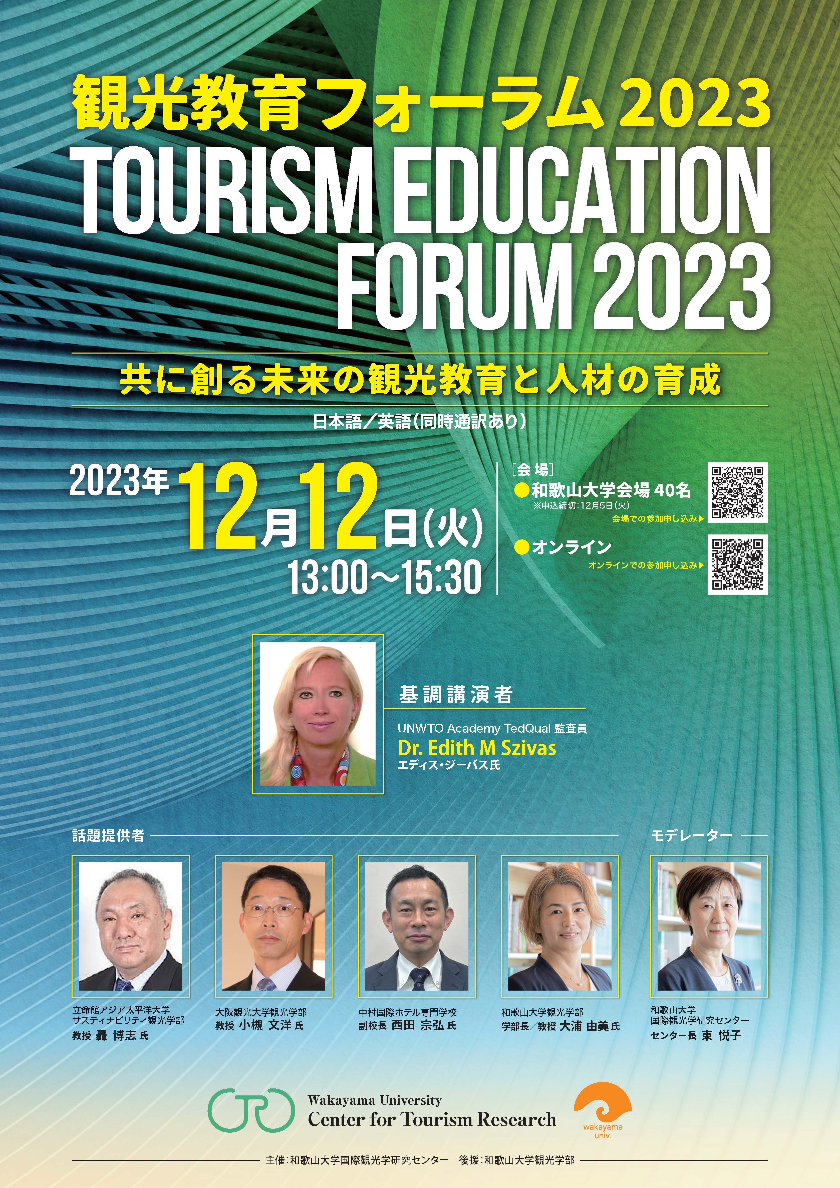 この度、和歌山大学国際観光学研究センター(CTR)では、観光教育フォーラムを開催いたします。