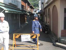 2010.9.5、海南市黒江船尾地区において、海南市、消防本部、警察署、県海草振興局、自主防災会、自治会、和歌山大学の連携によって津波避難訓練を 実施しました。東海・東南海・南海地震が発生した場合、海南市黒江船尾地区では震度6弱程度の揺れとともに、1時間以内に津波の第1波が来襲し、2m以上 浸水すると予測されています。今回の訓練では、津波到達までの限られた時間内にどのようにして避難すればよいのか、どのような課題があるのかを検討するた めに、①建物や塀の損壊などによって道路の一部を使用できない、②土砂災害によって一次避難場所を使えない、③地震の揺れによって負傷者が多数いる、④高 齢者など避難に時間がかかる人が多くいる、といった地震発生直後の困難な状況を想定して実施しました。また避難訓練実施後に行ったワークショップでの意見 交換を通じて、多くの課題が見つかったことが確認されました。