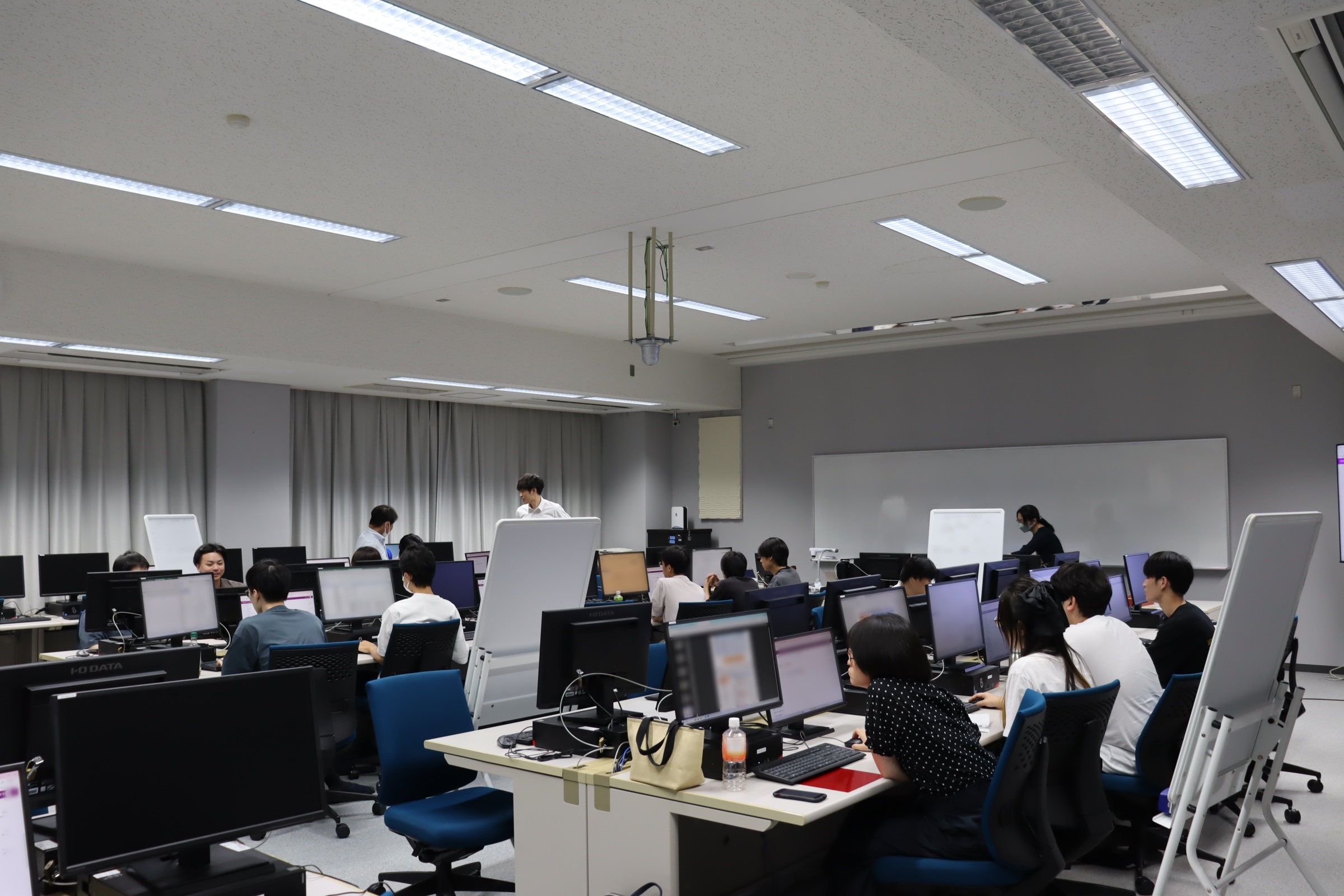 本講義では、オリエンテーションの後、業務の解説を受け、「ある銀行の新人データ分析者」として「上司」役である演習指導者から、銀行の状況について様々な分析や改善提案依頼(例:キャッシュレス動向とATM利用の関係性の検証等)を受け、上司とのインタビューを通じて業務内容の理解を行うなど、ロールプレイ型PBLとしてグループ内での議論を行い、Pythonプログラミング、Jupyter Notebookを活用してデータマイニングを行いました。各グループから活発な質問があり、発表会では多様かつ価値のあるビジネスモデルが提案されました。
