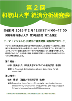 2/12 (木) 第2回 和歌山大学 経済分析研究会『デジタル化・自動化と経済発展:実証的アプローチ』開催のお知らせ