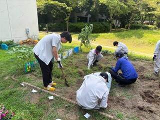 7月8日(火)、和歌山大学教育学部附属特別支援学校の高等部1年生の生徒たちが教育学部棟前の花壇にお花を植えてくれました。お花は生徒たちが学校で苗や種から大切に育てたもので、特別支援教育学専攻の学生たちも一緒に、花壇のほかプランターにも植え替えをしてくれ、生徒たちの努力と協力により、キャンパスが美しく彩られました。
