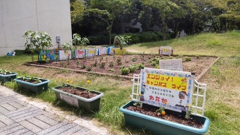 附属特別支援学校高等部の生徒たちがキャンパスにお花を植えてくれました!