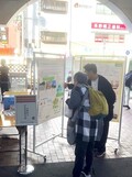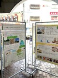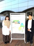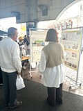 ※ポスターの作成と説明を主に担当した唐津さんと野上さん。展示の様子。