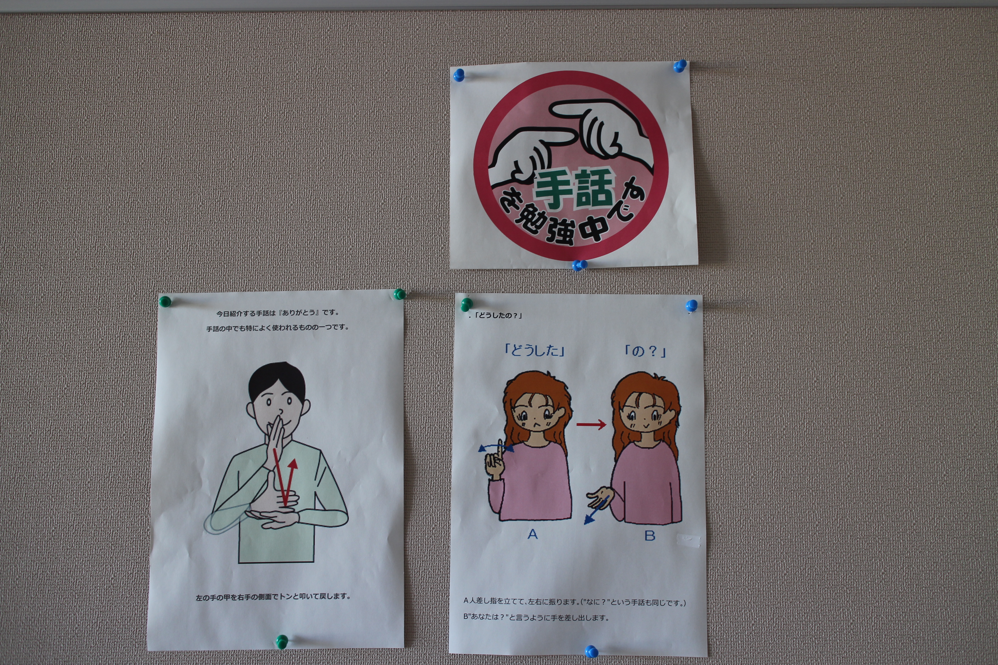 障がい学生支援室の掲示坂に「手話コーナー」が登場しました!!