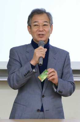 開会挨拶を行う山本 健慈 学長 講演を行う山本 朗 副支援室長