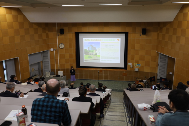 講演の中では、システム工学部を設置するにあたって置かれた理工系学部創設準備室や、建物新営と学生受け入れに関する苦労話が披露され、今後の発展に向けてどのような魅力を発信していくかについて話されました。