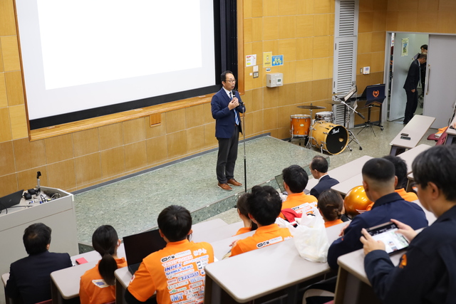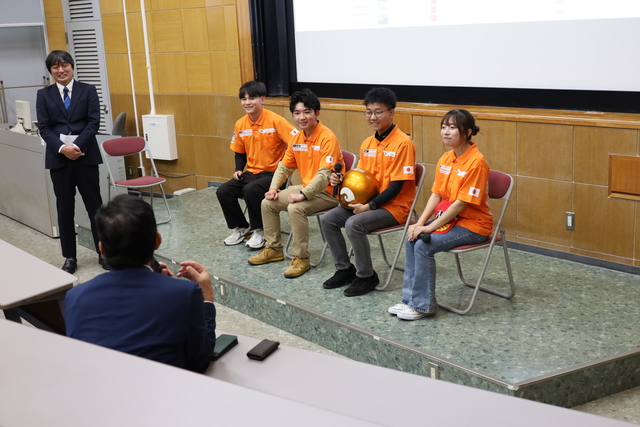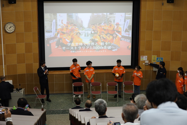 ゴール目前に悪天候によりコースアウトし、結果としては完走はなりませんでしたが、レギュレーションを踏まえた開発、オーストラリアへの運搬と通関、車検や他チームとのコミュニケーションのための英会話など、キャンパス内だけでは得られない学びについて語られました。