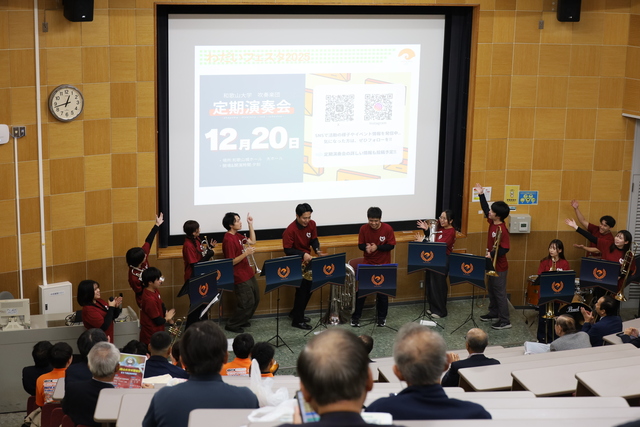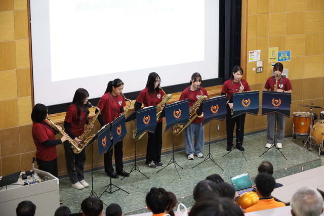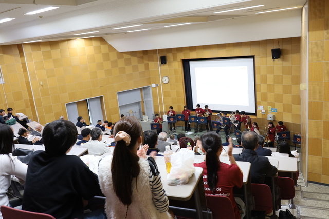 続いて、吹奏楽団による「情熱大陸」「魔女の宅急便メドレー」「吉本新喜劇のテーマ」「世界の約束」「Diamonds」の演奏があり、にぎやかな雰囲気となりました。