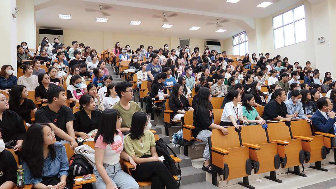News 和歌山大学国際同窓ネットワークからのお知らせ TOP和歌山大学国際同窓ネットワークからのお知らせ ベトナム・ホーチミン市師範大学で留学説明会を実施しました。 公開日 2023.12.22 12月20日、本学学長、長友センター長らがホーチミン市師範大学を訪問し、日本語学部1~3年生約200名の学生さんに和歌山大学への留学説明会を行いました。 皆さん、興味深く聞いていただき、質問タイムも盛り上がりました。 (前列左から)長友センター長、本山学長、石原特任教授 次は和歌山大学でお待ちしていますね!ありがとうございました。