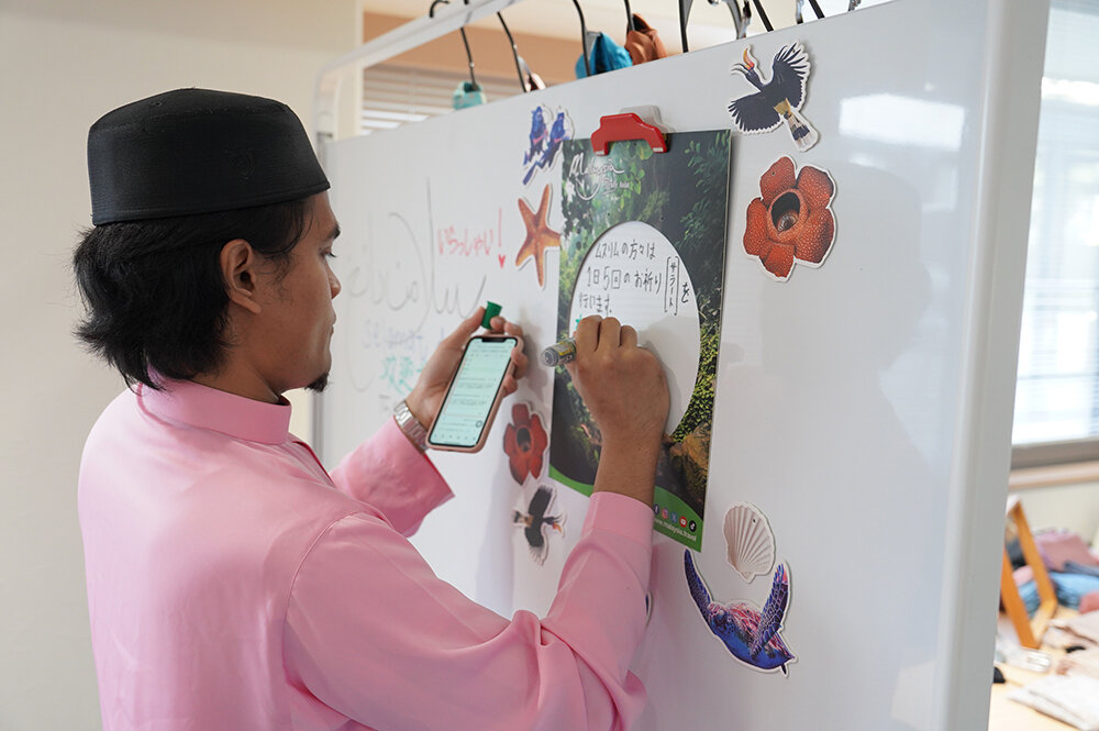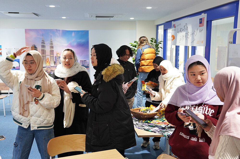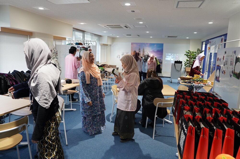 国際同窓ネットワーク・マレーシア結成を記念して、学内国際交流イベント「マレーシアの日」を開催しました。マレーシア、ムスリムの文化について広く知ってもらうことを目的とし、マレーシアを代表するミルクティ「テタレ」の試飲やマレー語、ハラルなどムスリムの生活習慣に関するクイズ、ヒジャブ体験、ジャウィ文字サイン会、留学生によるライブパフォーマンスなどが行われ、終始盛況でした。