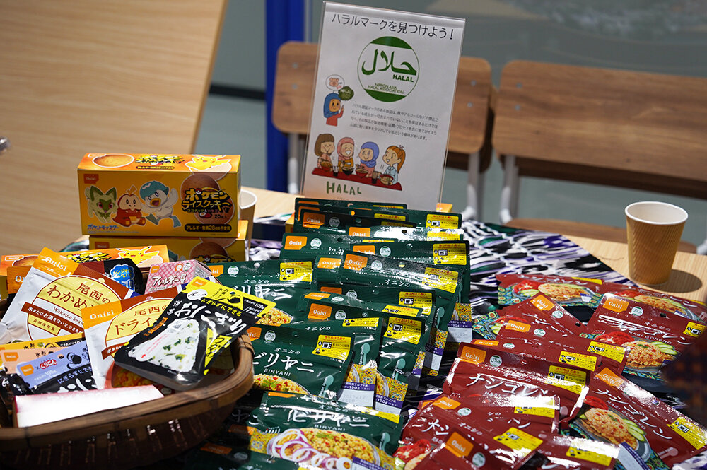 ハラル商品コーナーでは、ハラル認証の非常食(尾西食品)を紹介しました。留学生からは「災害時にこういったものがあると本当にありがたい」「事前に知っておくことが大切」などの声がありました。
