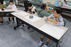 色についての説明を先生から聞いた後、実際に、水性ペンを使って実験をしていきます。