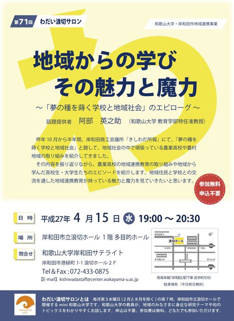 【4/15(水)】第71回わだい浪切サロン 地域からの学び その魅力と魔力~「夢の種を蒔く学校と地域社会」のエピローグ~」