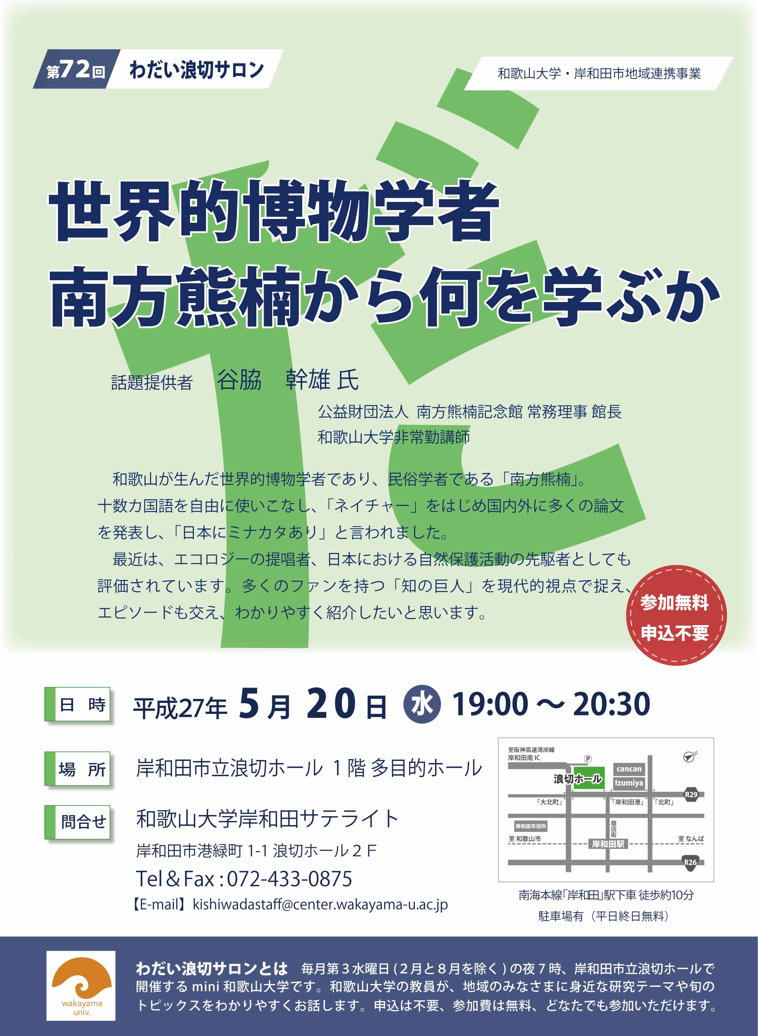 【5/20(水)】第72回わだい浪切サロン 世界的博物学者 南方熊楠から何を学ぶか