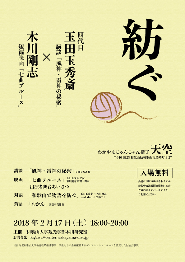 【観光学部】2/17(土)18時~開催!~講演会・講談・映画上映会「紡ぐ」(玉田玉秀斎・木川剛志 対談)