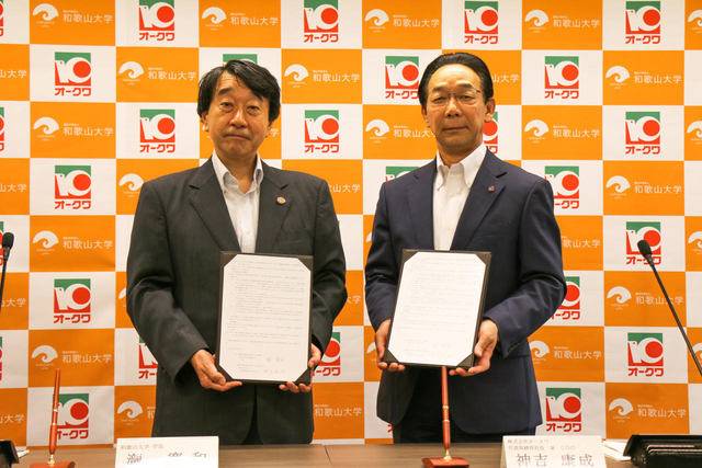 左から、和歌山大学 瀧 寛和 学長、株式会社オークワ 神吉 康成 代表取締役社長兼COO