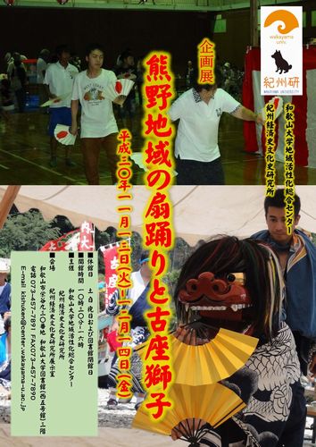 紀州経済史文化史研究所展示室にて開催中の企画展「熊野地域の扇踊りと古座獅子」は、12月14日(金)が最終日となります。
