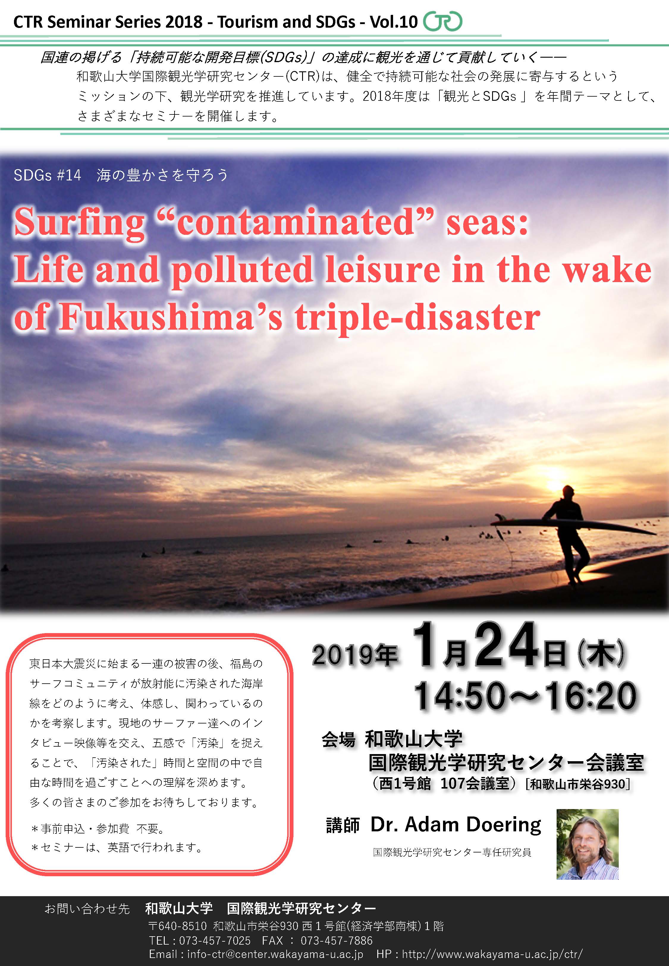 【国際観光学研究センター】1/24(木)開催!CTR Seminar Series 2018「Surfing “contaminated” seas: Life and polluted leisure in the wake of Fukushima’s triple-disaster」