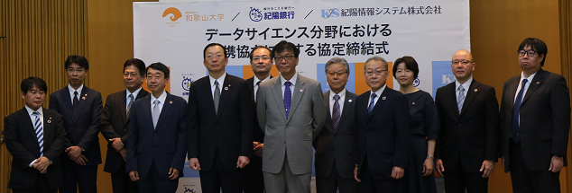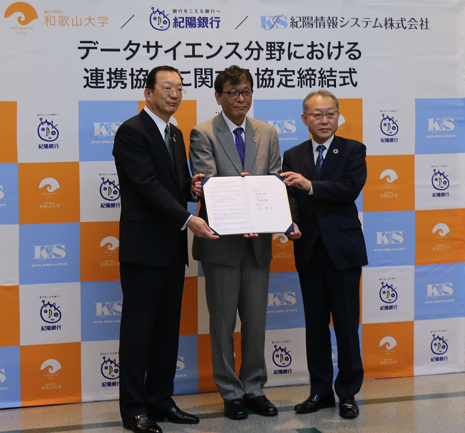 国立大学法人和歌山大学(学長 伊東 千尋)、株式会社紀陽銀行(頭取 松岡 靖之)、紀陽情報システム株式会社(代表取締役社長 島 慶司)は、2019年5月31日付でデータサイエンス分野における連携協定を締結しました。