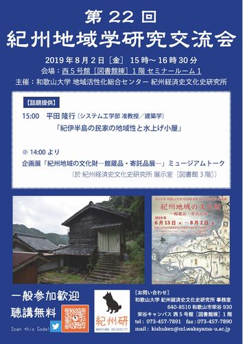 令和元年8月2日(金)に、紀州地域学研究交流会を開催します。