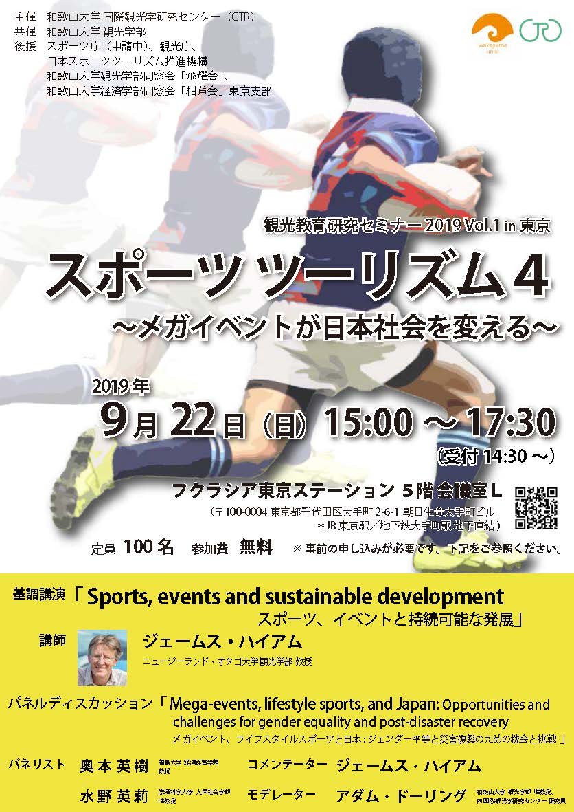 【国際観光学研究センター】9/22(日)15時~開催!公開セミナー「スポーツ ツーリズム4 ~メガイベントが日本社会を変える~」
