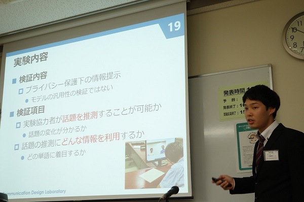 和歌山大学大学院システム工学研究科の河島健司さん(博士前期課程1年 コミュニケーション科学クラスタ、コミュニケーションデザイン研究室)が、2019年9月に開催された、2019年度情報処理学会関西支部 支部大会で学生優秀発表賞を受賞しました。