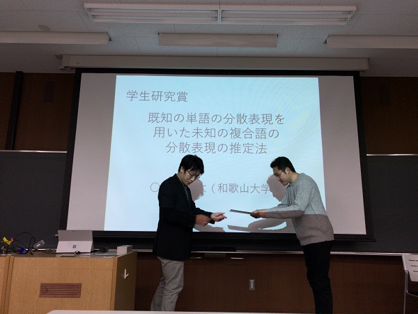 和歌山大学大学院システム工学研究科の高木涼太さん(博士前期課程2年 システム知能クラスタ、風間研究室)が、(社)電気情報通信学会 言語理解とコミュニケーション研究会(NLC) 学生研究賞を受賞しました。