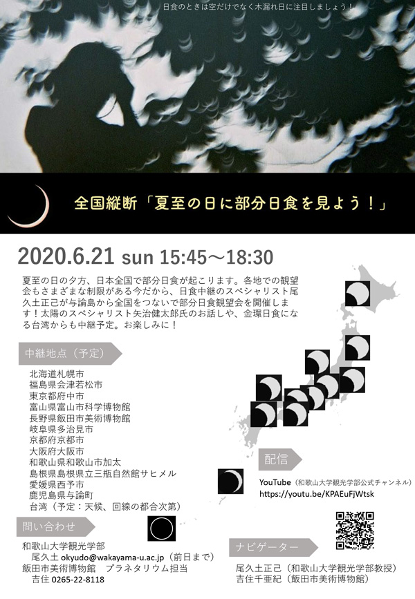 各地での観望会もさまざまな制限がある今だから、日食中継のスペシャリスト・観光学部の尾久土正己教授が与論島から全国をつないで部分日食観望会を開催します!
