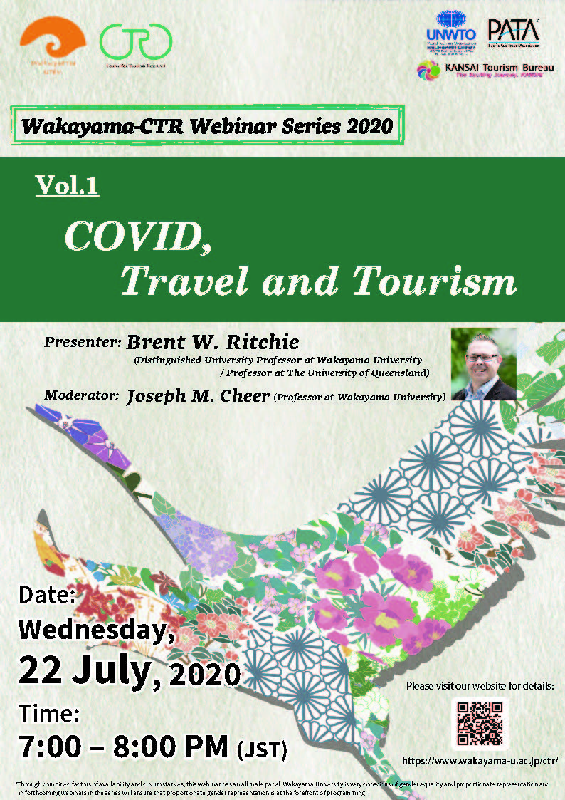 国際観光学研究センター(CTR)では、オンライセミナー Wakayama-CTR Webinar Series 2020 Vol.1「COVID, Travel and Tourism」を開催いたします。