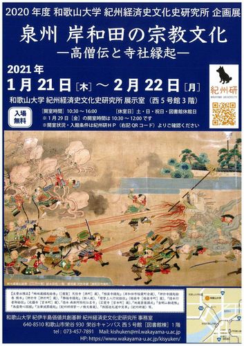 紀州経済史文化史研究所では、令和3年1月21日(木)より企画展「泉州 岸和田の宗教文化―高僧伝と寺社縁起―」を開催いたします。