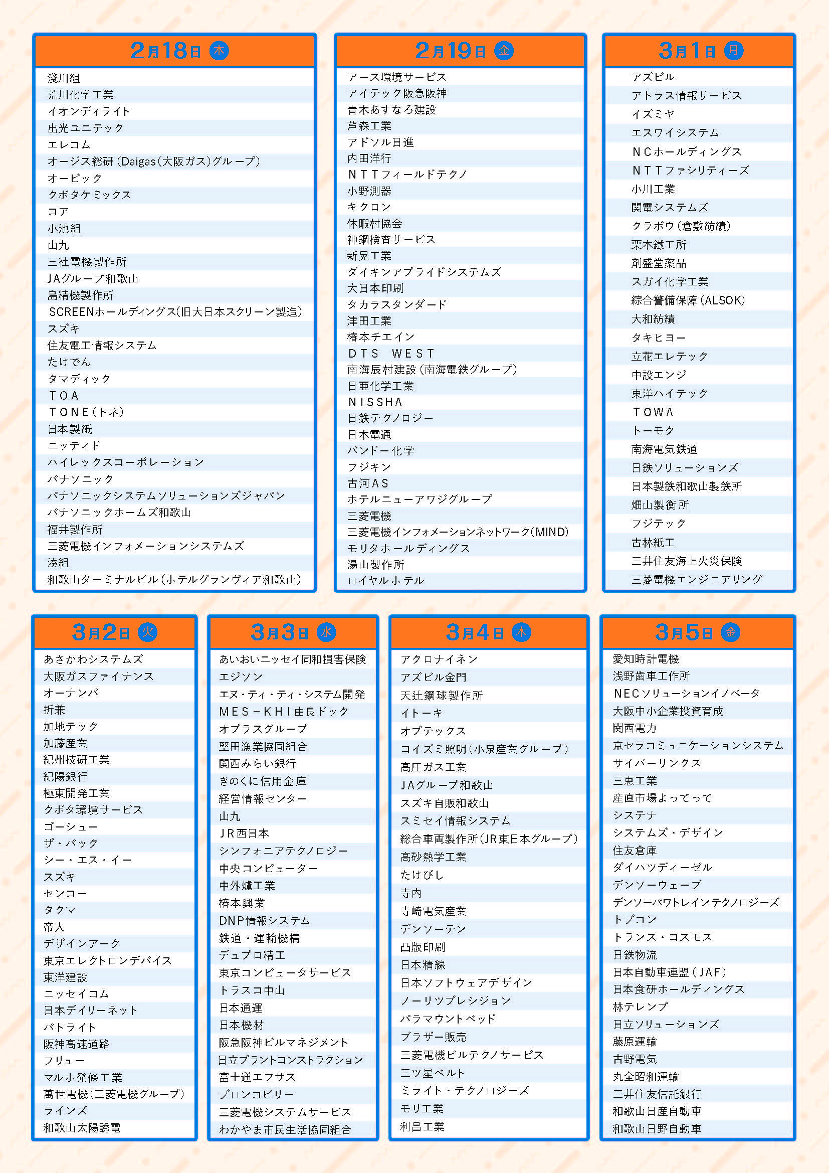 2021年2月15日(月)~19日(金)、3月1日(月)~5日(金) の10日間で298社をお招きします。